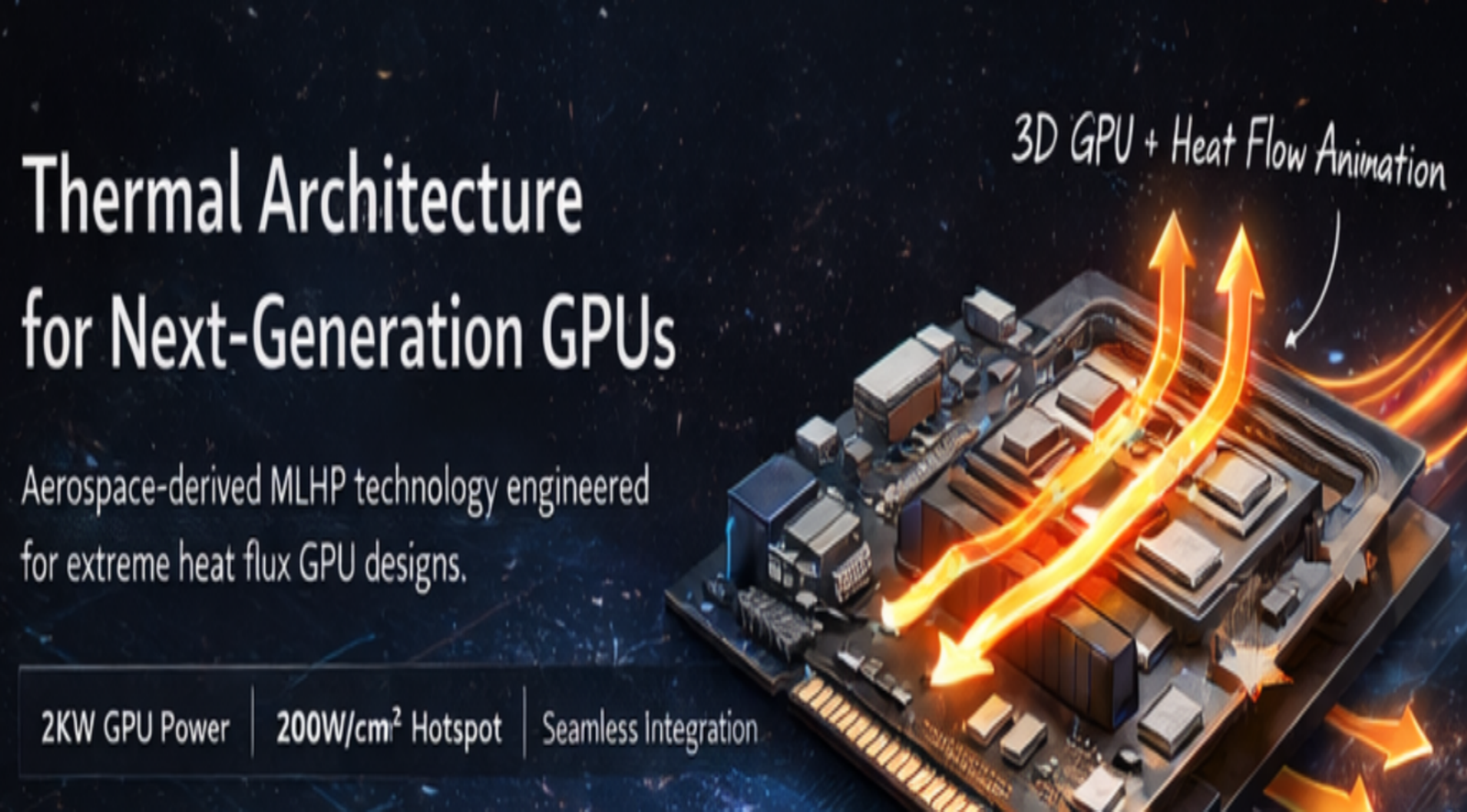 Derived from aerospace thermal control technology, our MLHP solution is engineered for extreme heat flux environments and scalable power densities, making it well suited for future GPU and AI accelerator platforms.